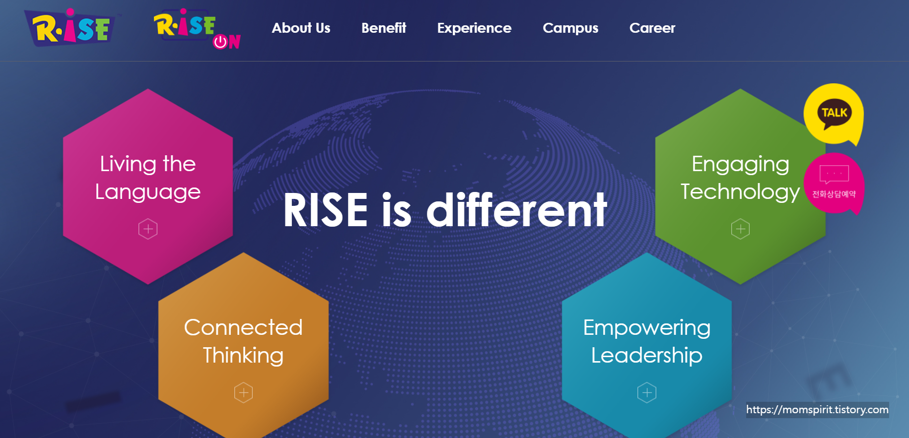 | 라이즈 어학원 | 프랜차이즈 | 전국 25개 지점 | 하버드 대학 교수진에게 인정받은 커리큘럼을 기반으로, 몰입식 영어 프로그램을 제공함. |